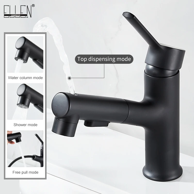 ELLEN retirer salle de bain évier robinet noir eau chaude froide mélange grue 360 rotation gargarisme robinet robinet EL1490.