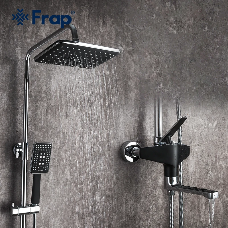Frap robinet de douche mural robinet de salle de bains pomme pluie noire mitigeur de baignoire-douche robinet de douche mélangeur F2457