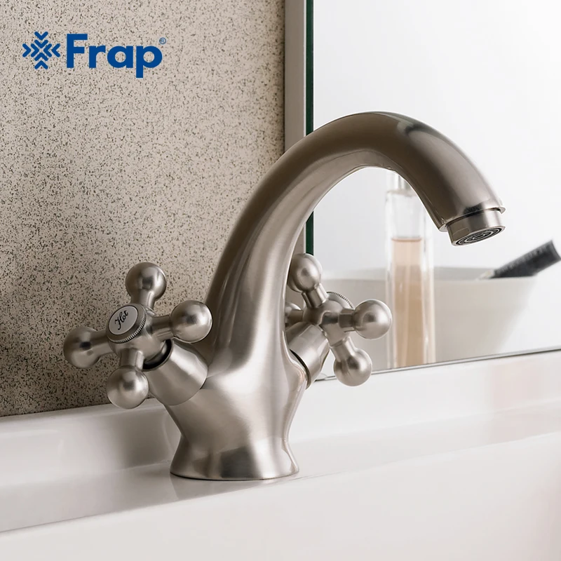 Frap robinets de lavabo corps en laiton Nickel brossé deux poignées couleur rétro F1019-5
