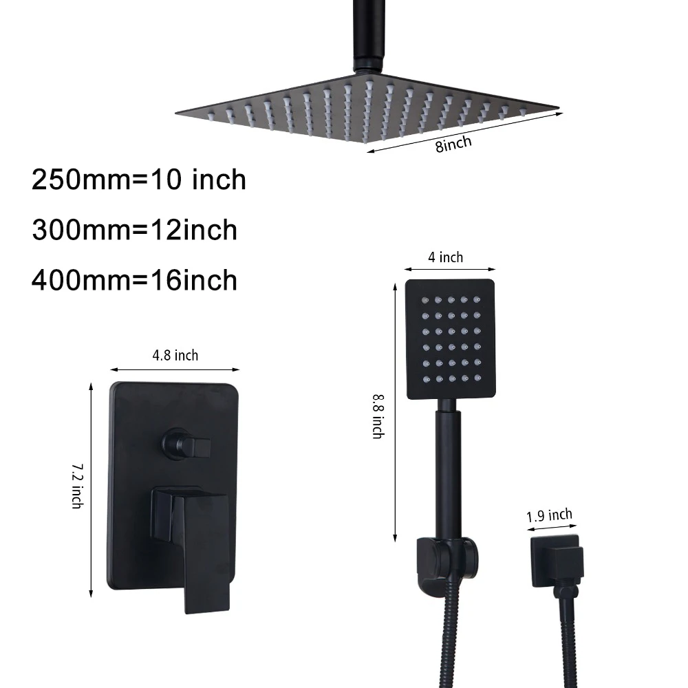 JIENI 8/16 pouces mat noir salle de bain robinet de douche mural noir LED pomme de douche mitigeur W/pluie robinet de douche ensemble.