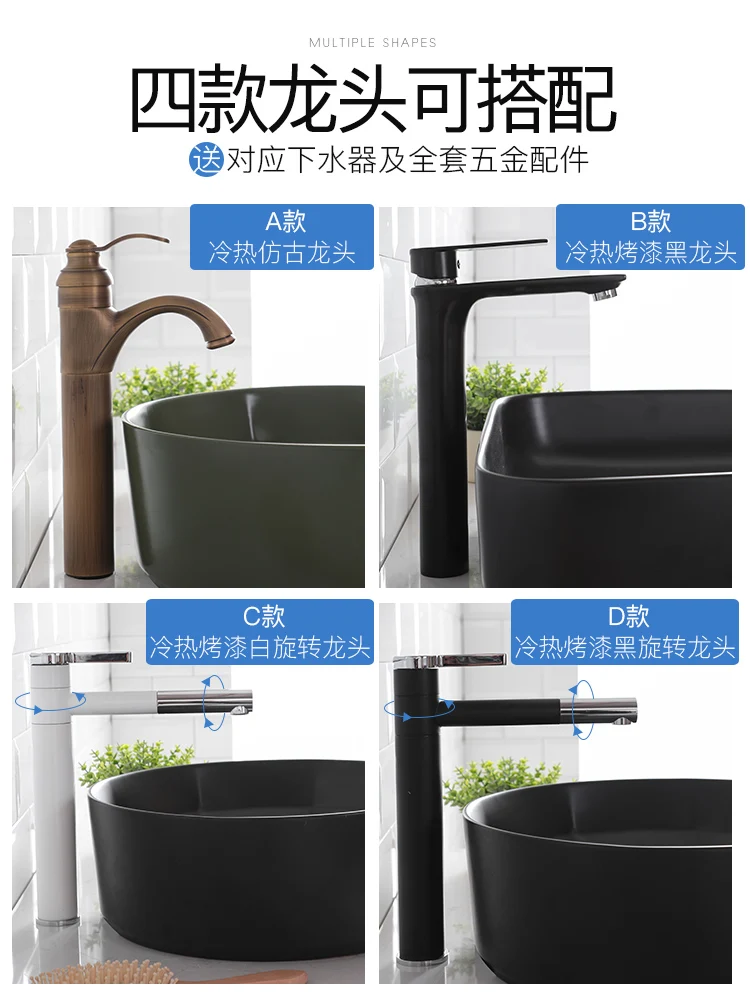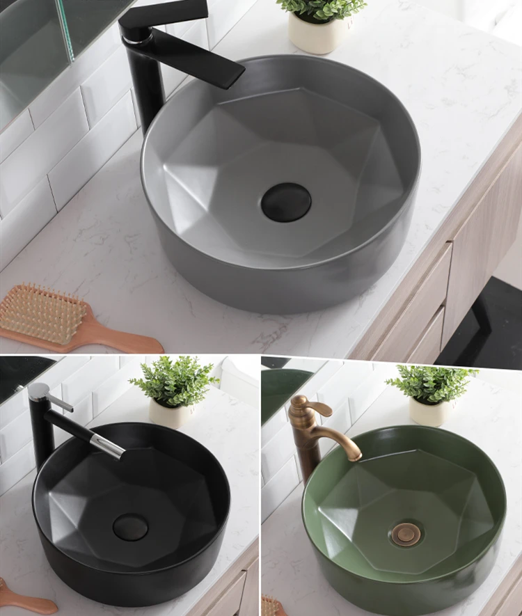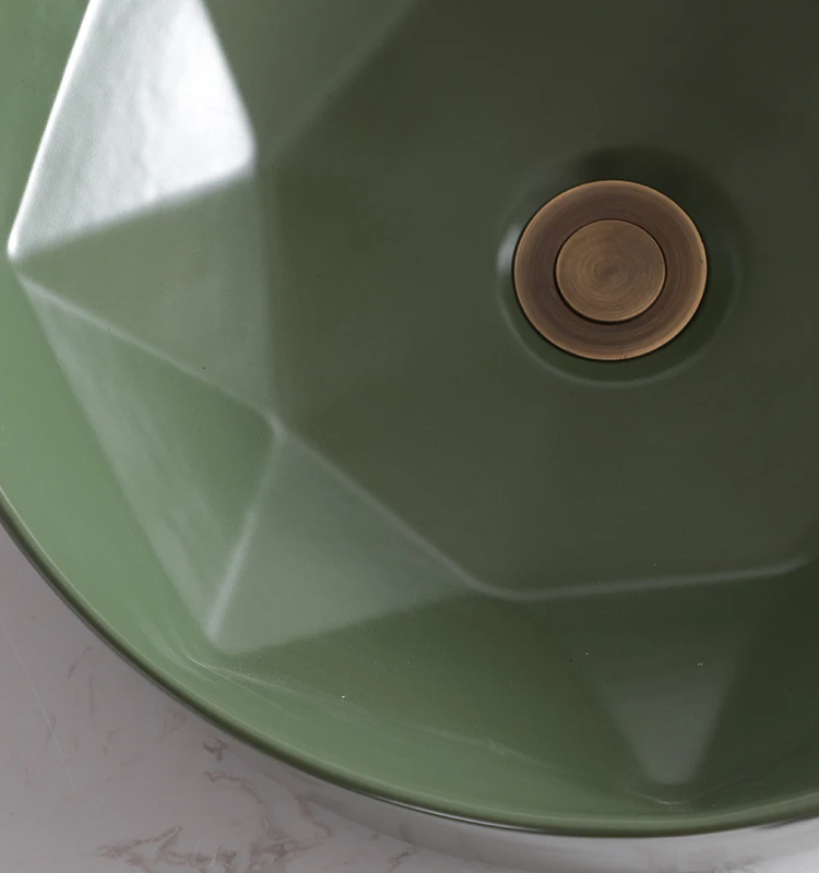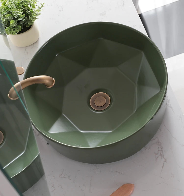 Lavabo en céramique rond créatif à poser vert pour la toilette de la maison lavabo de salle de bains