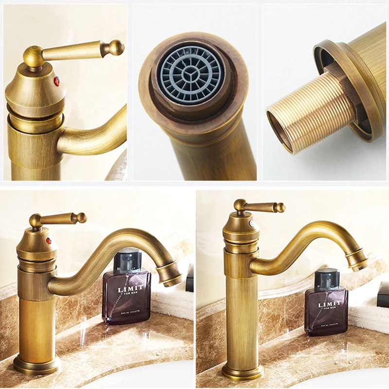 Robinet de salle de bains Bronze Antique mitigeur de grand vaisseau mélangeur de robinets d'eau chaude et froide robinetterie Bronze Antique EL5002
