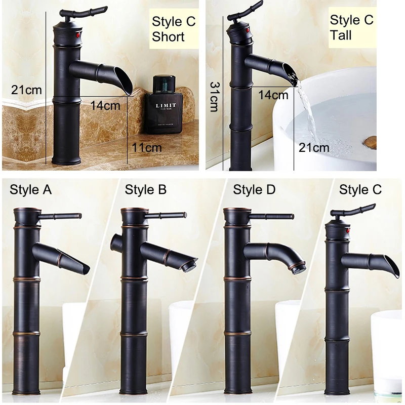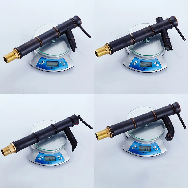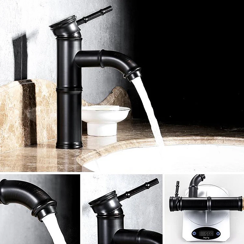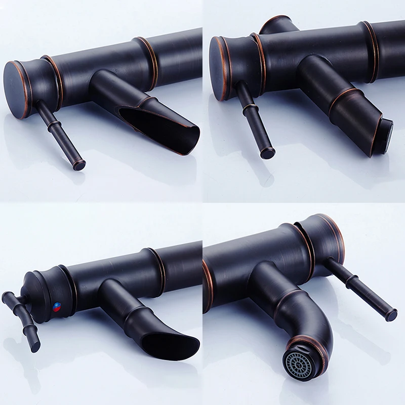 Robinet mélangeur d'eau chaude et froide robinet d'évier de grande salle de bains monté sur le pont robinets de bain en bambou gravats d'huile Bronze EL7234