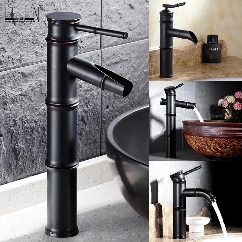 Robinet mélangeur d'eau chaude et froide robinet d'évier de grande salle de bains monté sur le pont robinets de bain en bambou gravats d'huile Bronze EL7234.