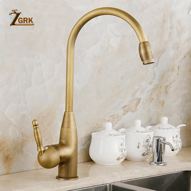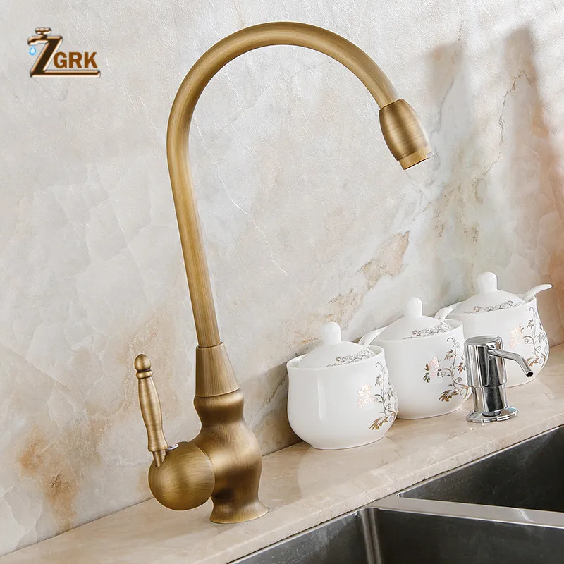 Robinet mitigeur pour cuisine en laiton avec bec pivotant robinets de cuisine couleur Antique robinet mitigeur pour évier à poignée unique.