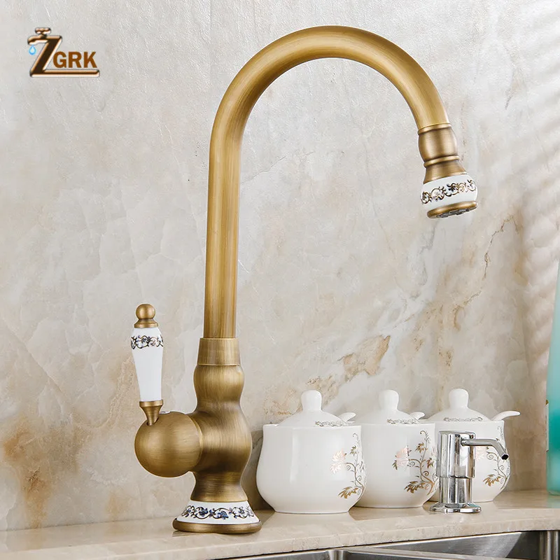 Robinet mitigeur pour cuisine en laiton avec bec pivotant robinets de cuisine couleur Antique robinet mitigeur pour évier à poignée unique