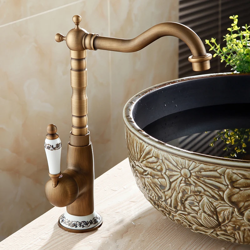 Robinets de Lavabo Antique salle de bain évier mélangeur Grifo Lavabo mitigeur monotrou WC salle de bain robinet laiton robinet chaud et froid 9210F.