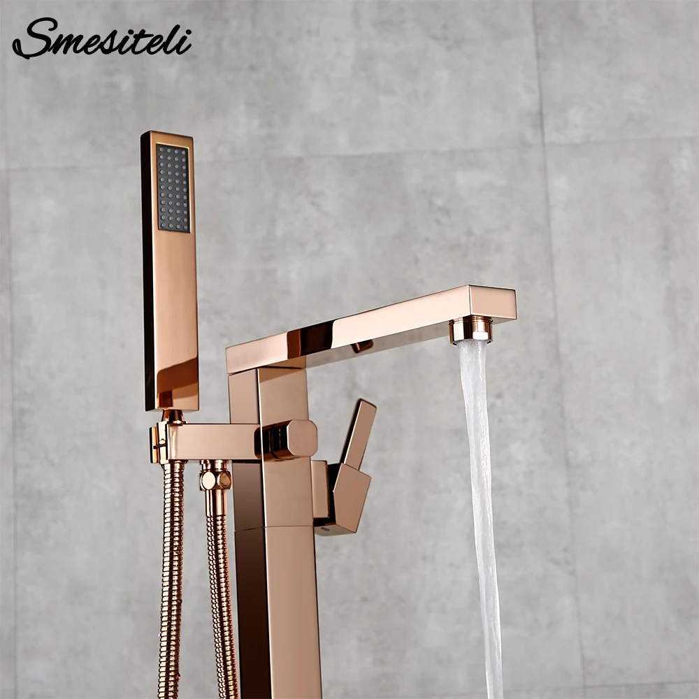 Smesiteli robinet mitigeur froid/chaud salle de bains de luxe salle de bains autoportante bec de bain monté sur le sol robinet avec douchette robinet à main noir mat
