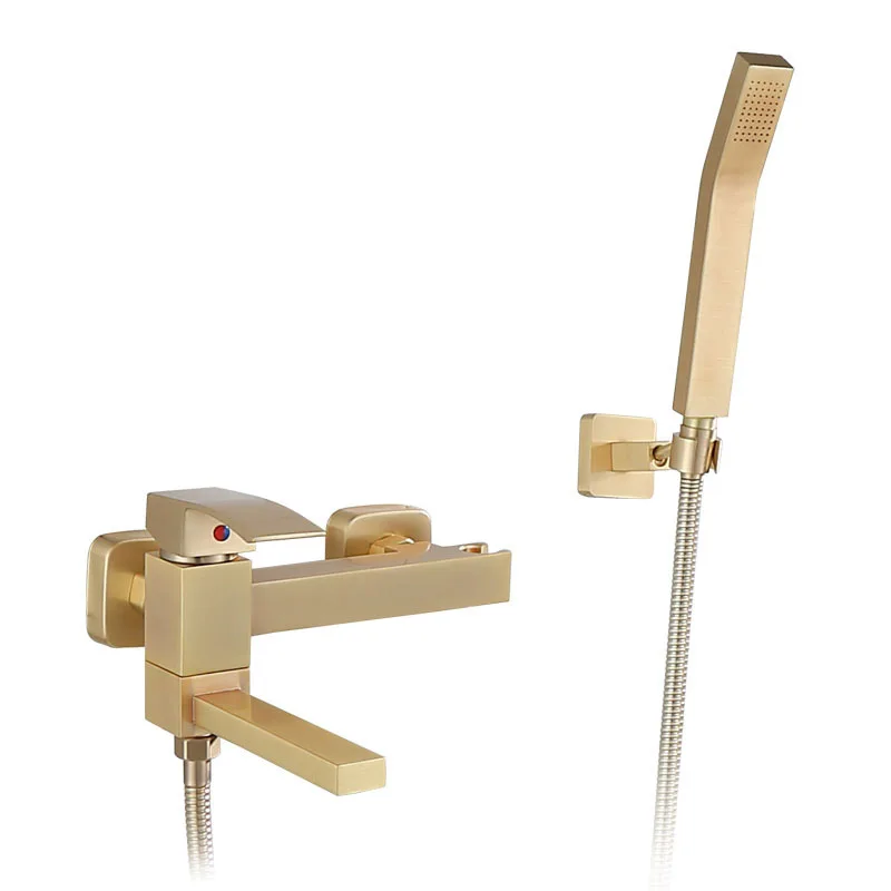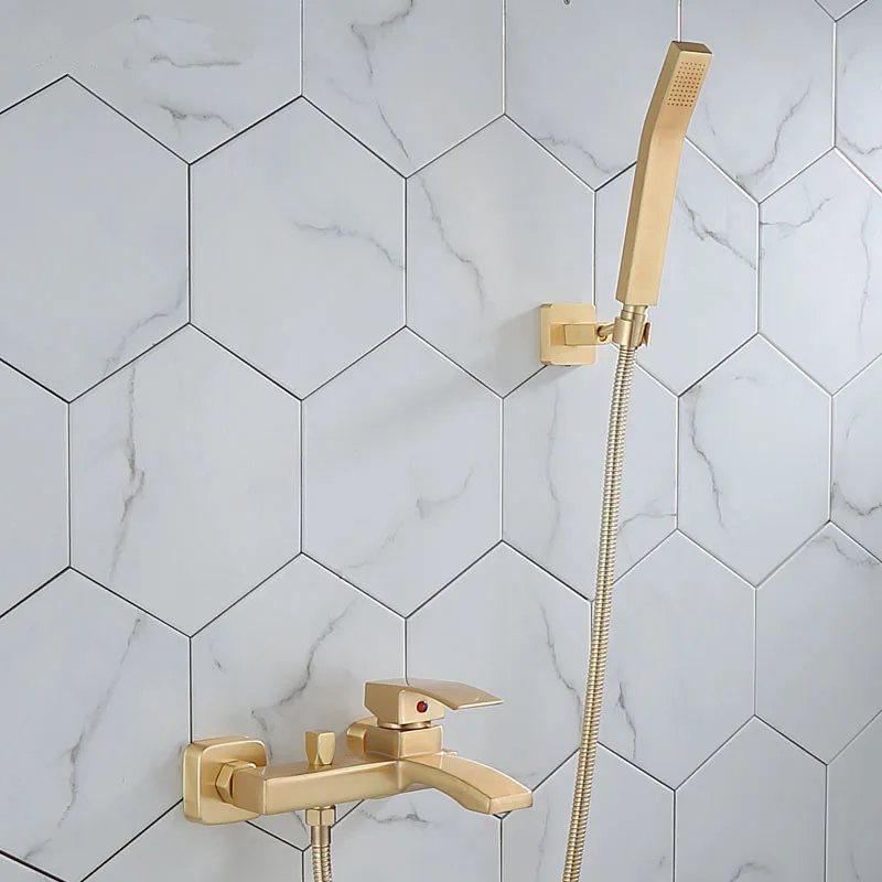 Tuqiu ensemble baignoire-douche murale Robinet de baignoire en or brossé robinets mélangeurs de bain et de douche en laiton pour salle de bains froide et chaude
