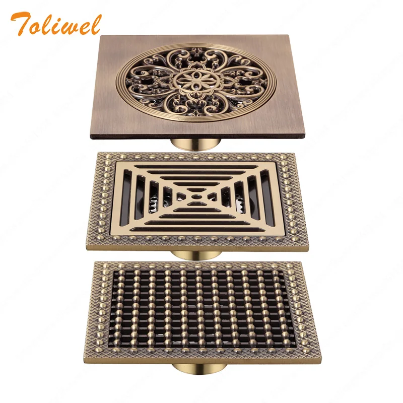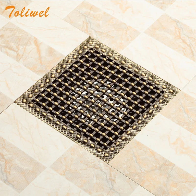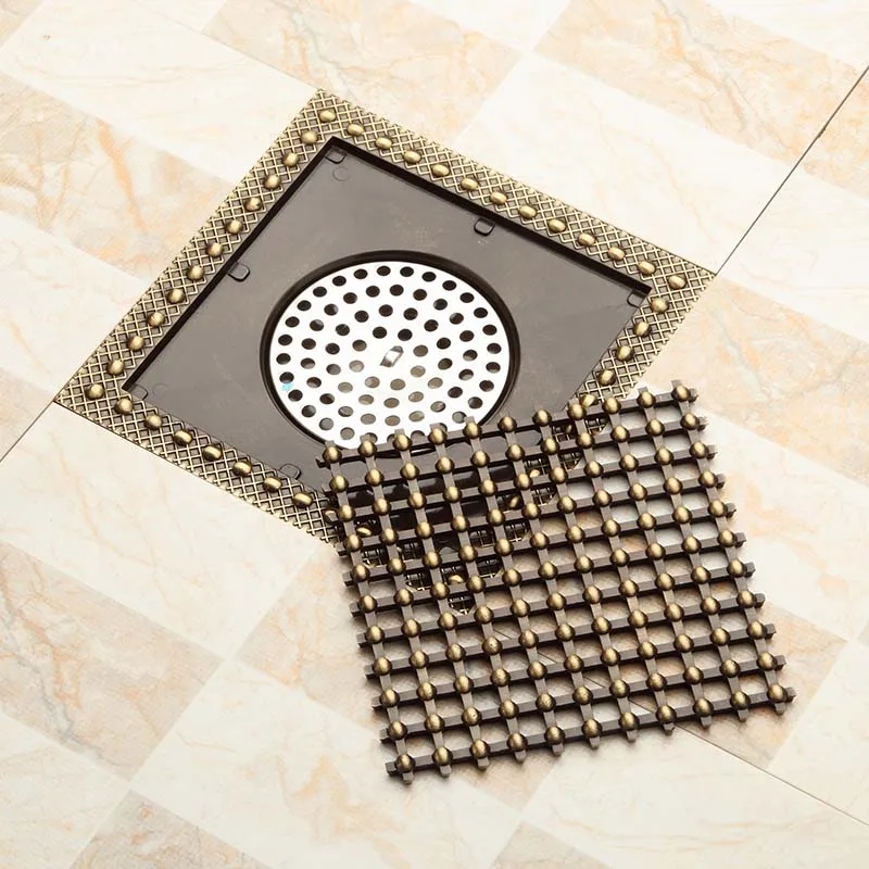Égouttoir à grille en laiton Antique Égout carré de la salle de bain douche 15x15