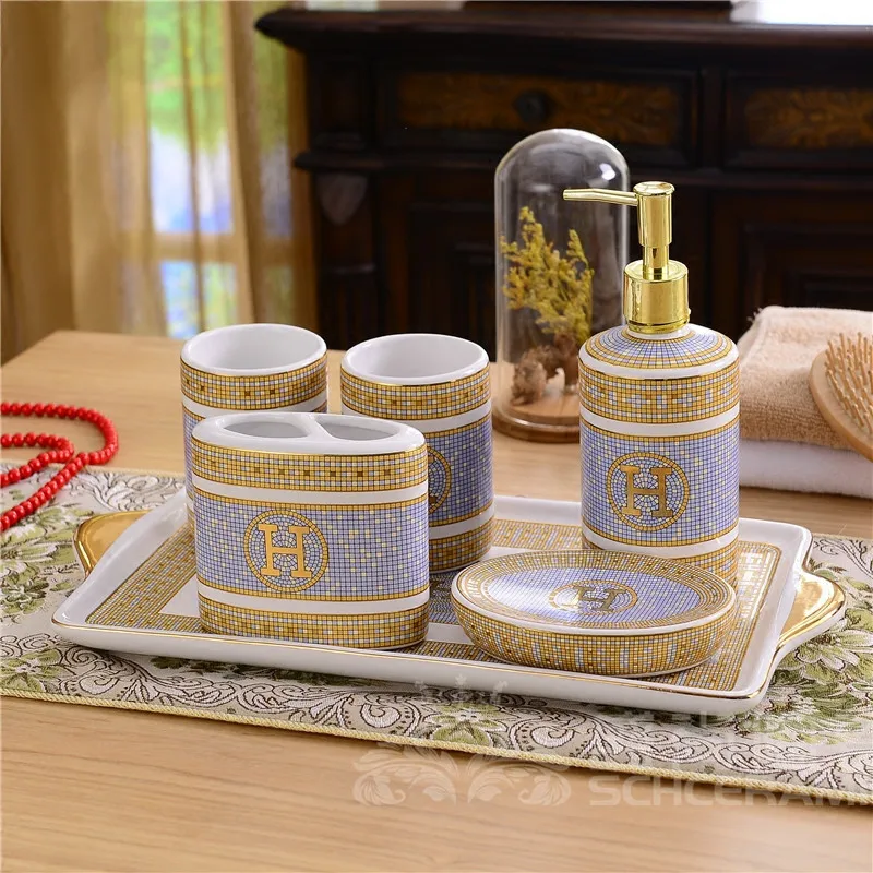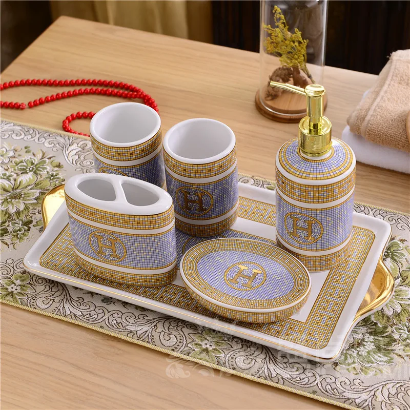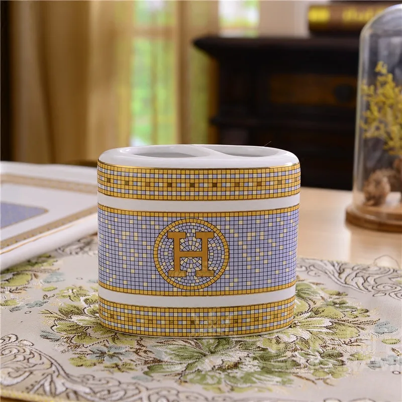 Ensemble d'accessoires de salle de bain porte-savon en céramique distributeur de savon porte-brosse à dents gargarisme tasse Style européen ensemble de salle de bain cadeaux de mariage.