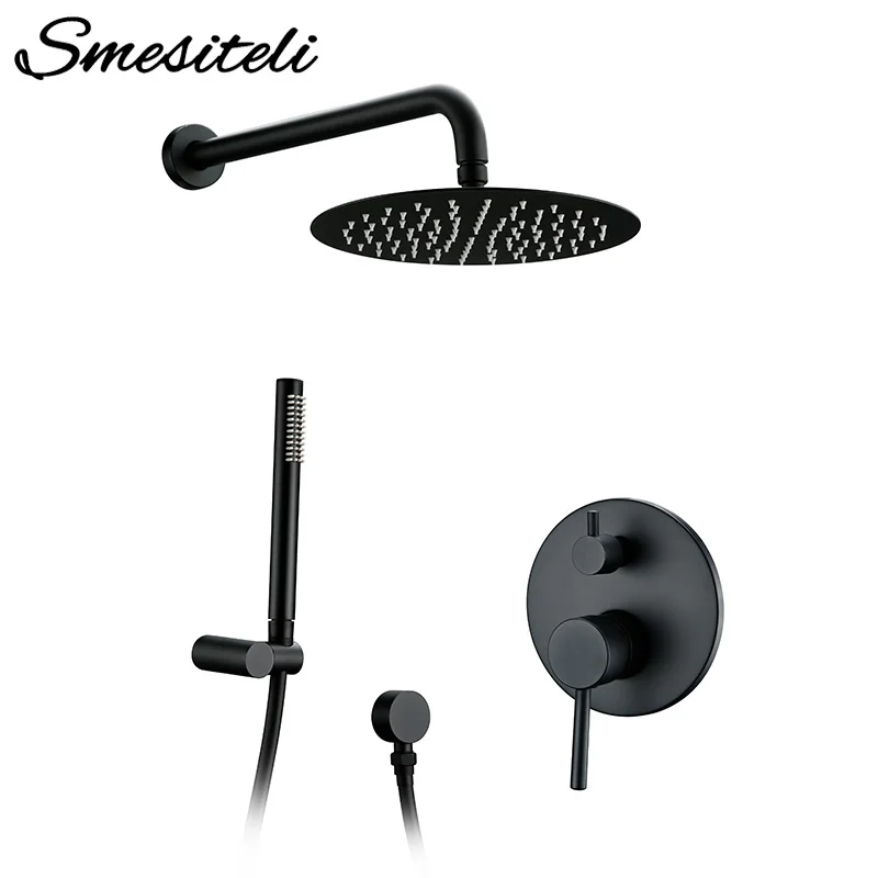 Ensemble de douche rond en laiton mat vendu ensemble de bras droit tête 8/10/12 pouces avec robinets mélangeurs robinet de salle de bains Alba noir.