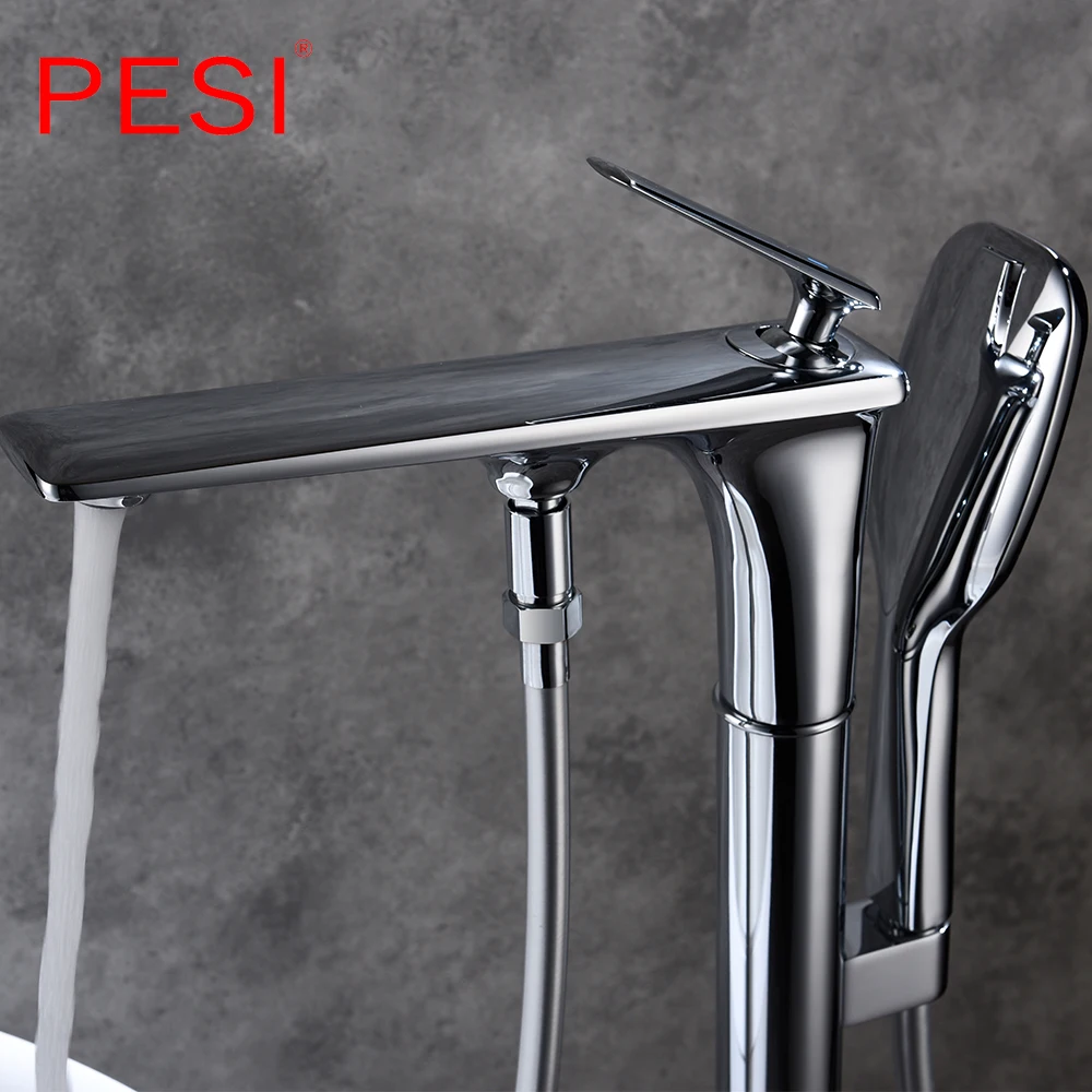 Ensemble de robinets de baignoire chromés sur pied ensemble de robinets de baignoire à poignée en céramique mélangeurs de baignoire à pied des griffes bec pivotant robinet de brastub.