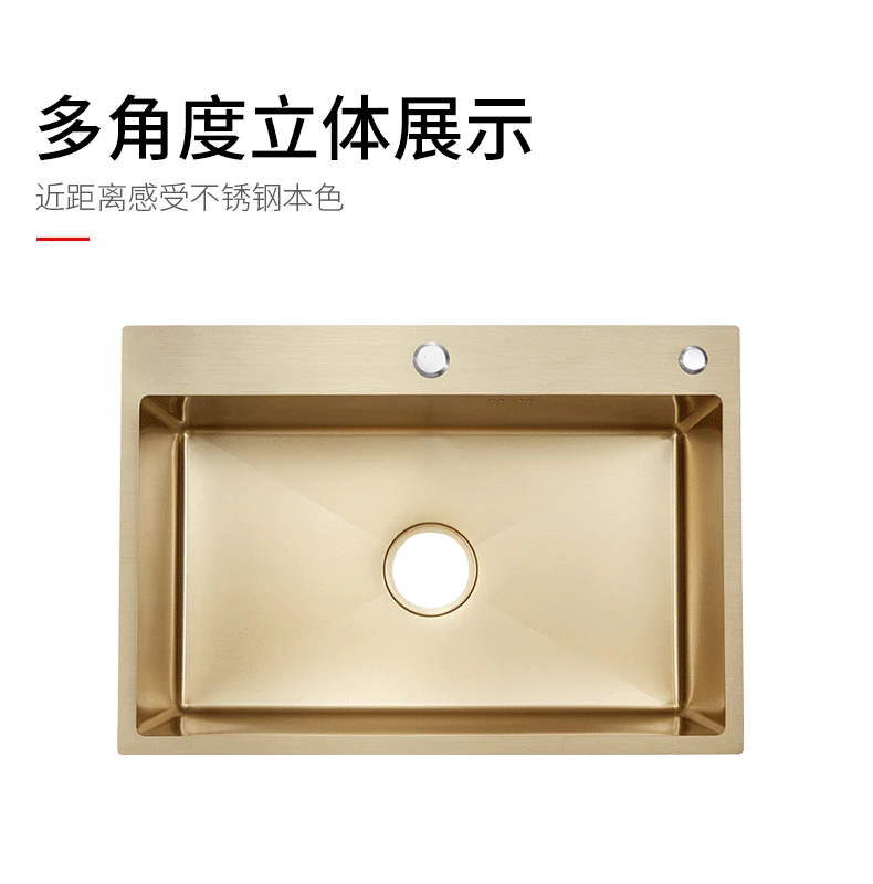 Évier de cuisine couleur or monté au dessus ou en dessous du comptoir lavabo à légumes simple en inox 304 bol de 53x43cm.