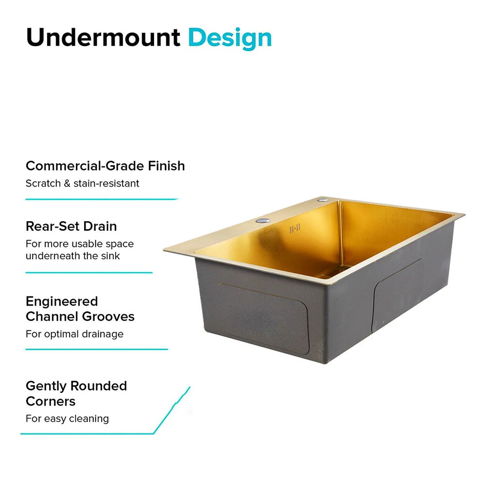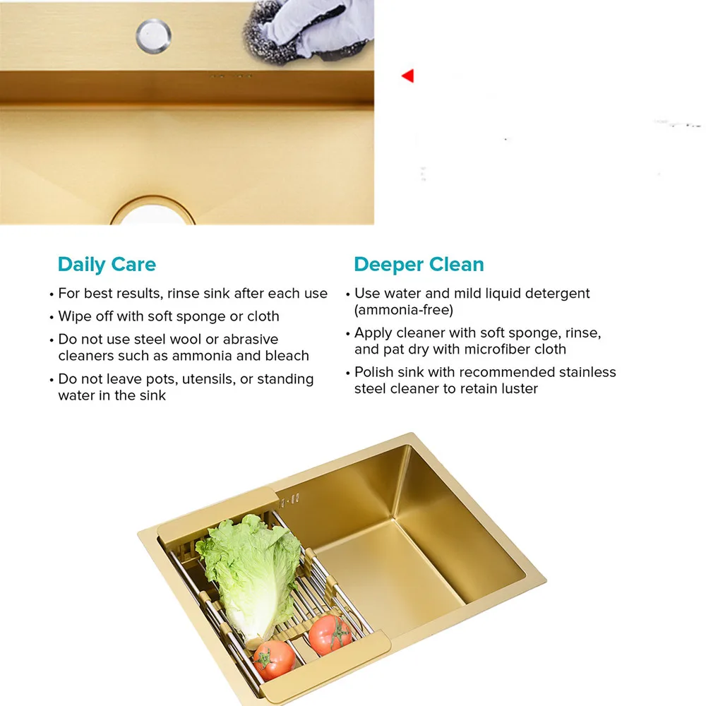 Évier de cuisine couleur or monté au dessus ou en dessous du comptoir lavabo à légumes simple en inox 304 bol de 53x43cm