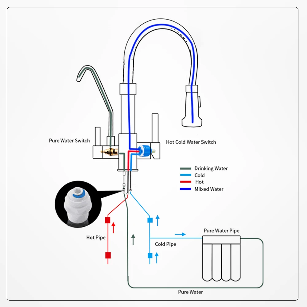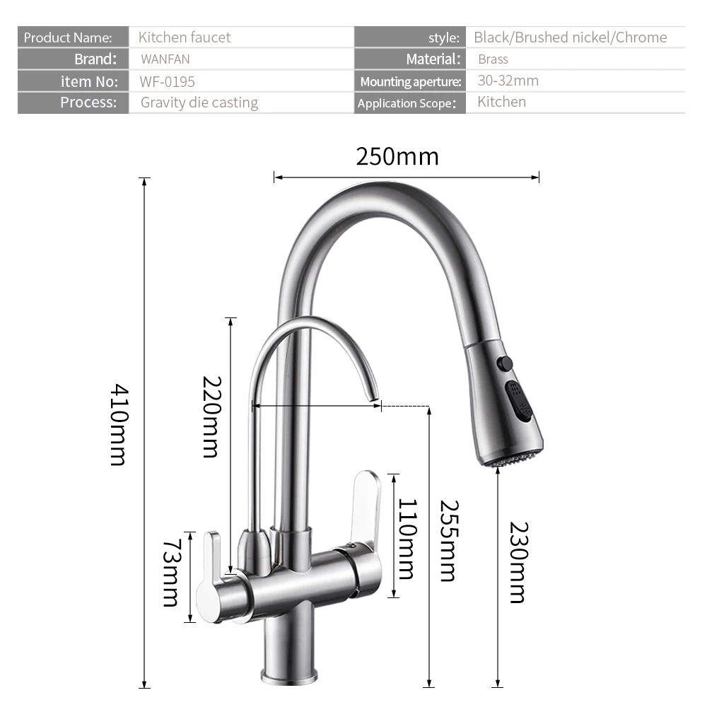 Mitigeur avec filtre à eau pour la cuisine evier mélangeur robinet de cuisine à trois voies WF-0195