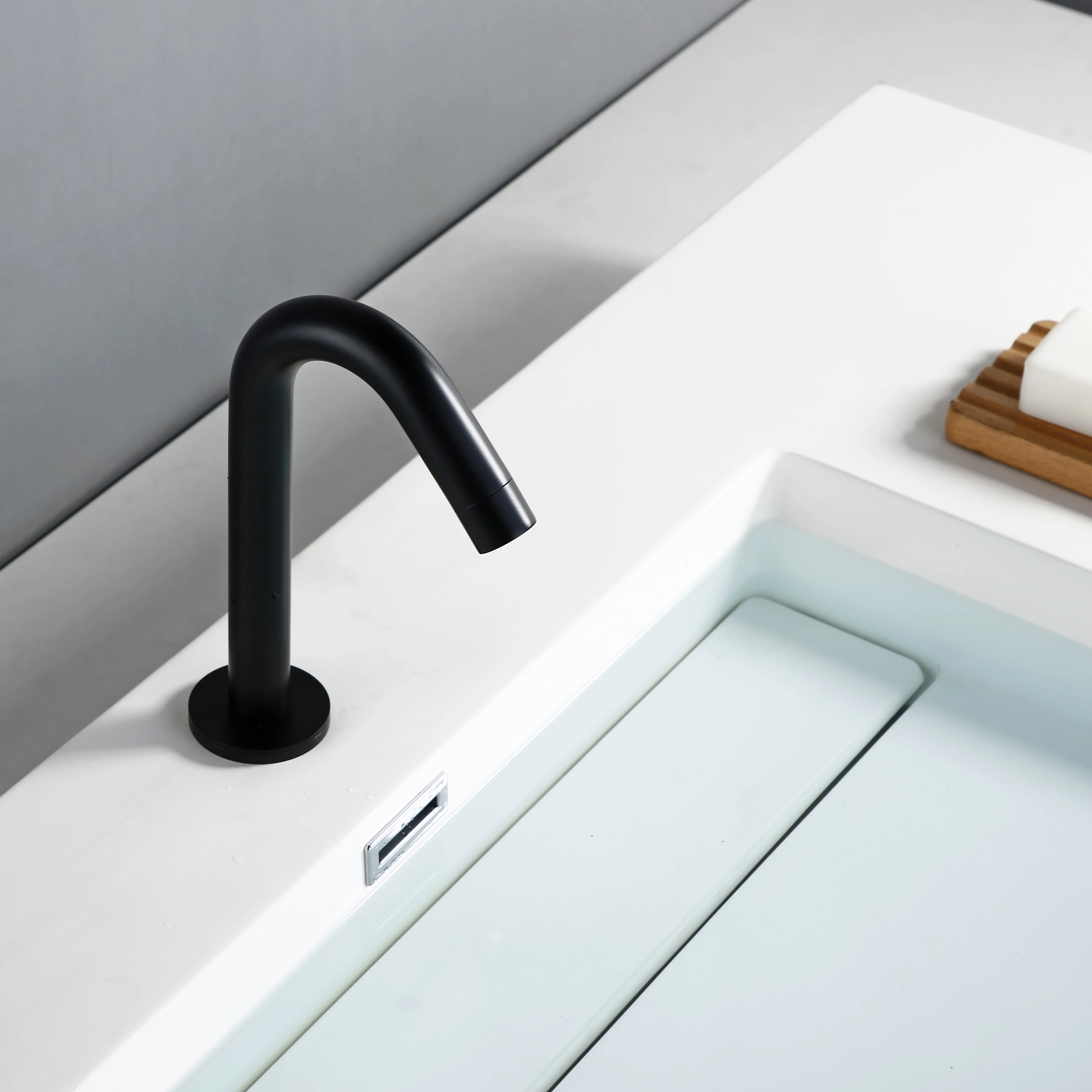 Mitigeur en acier inoxydable chromé noir capteur tactile intelligent Design sensible robinet de salle de bains monté sur le pont sans mains