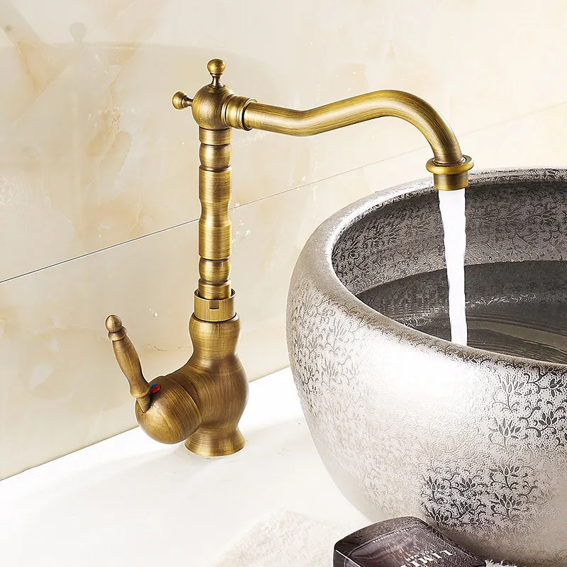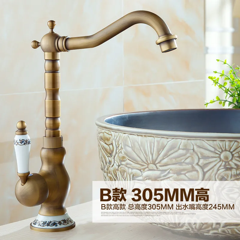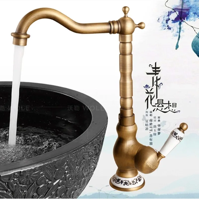 Robinet de cuisine archaïque chaud et froid évier brossé robinet de cuisine Style rétro rotatif en laiton massif Ui02
