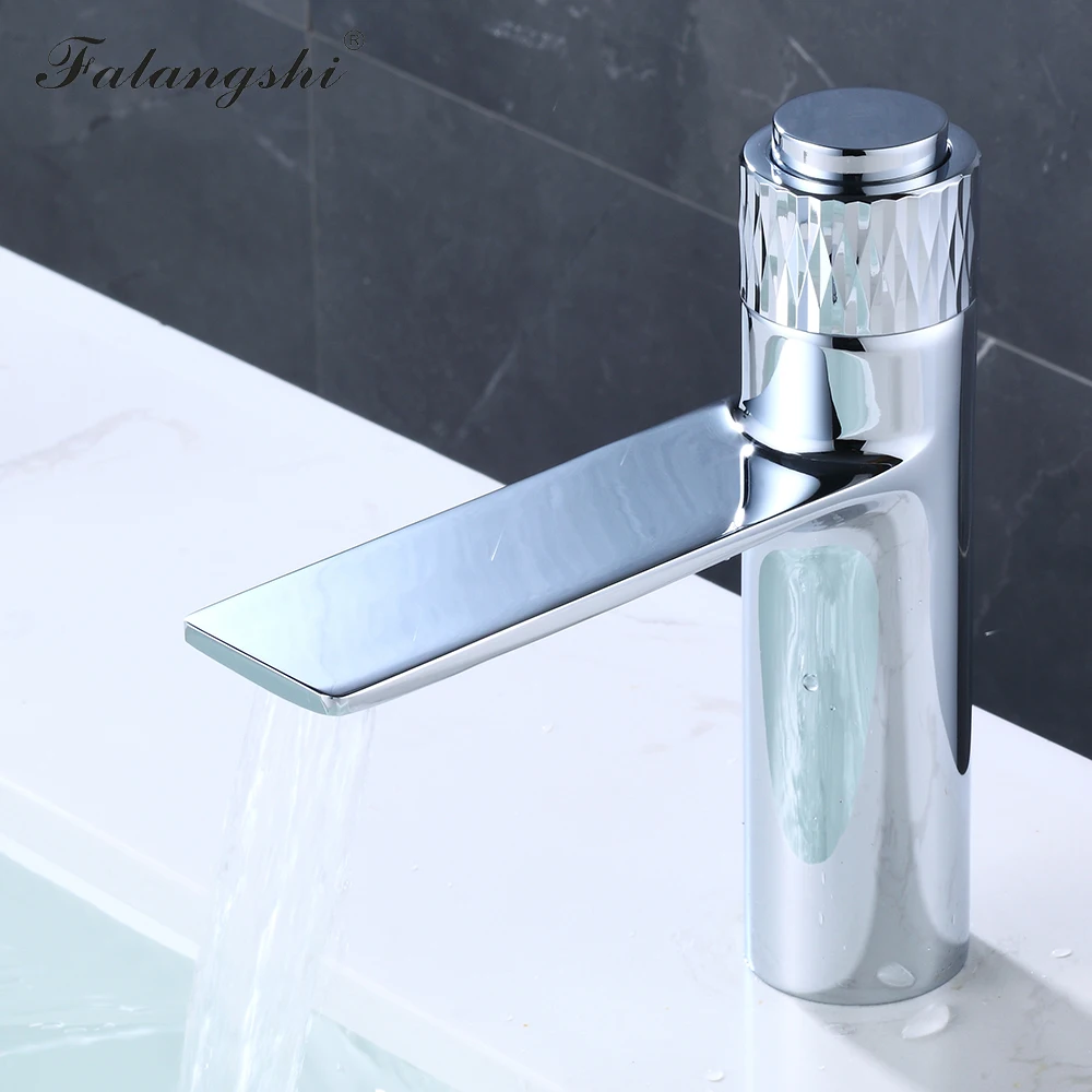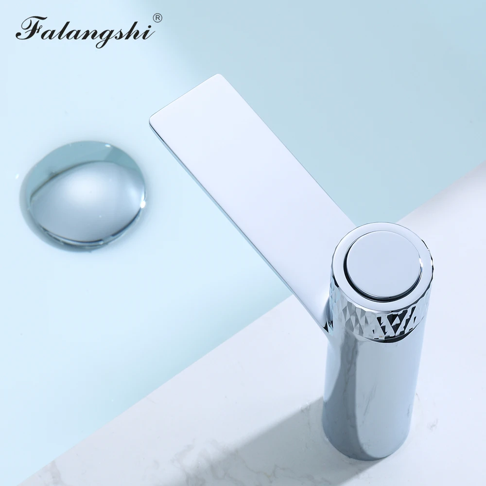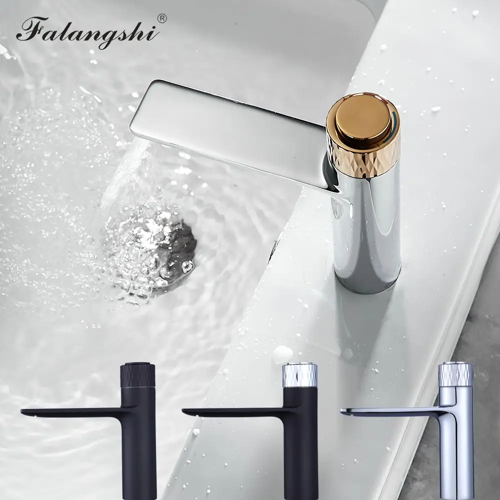 Robinet de lavabo robinet à bouton poussoir contemporain salle de bain froid et chaud mélangeur Chrome laiton lavabo robinet pont monté WB1095.