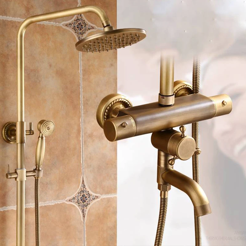Robinet thermostatique de douche Bronze Antique avec jet Bidet ensembles de douche pour la salle de bains robinet de douche pluie EL4103