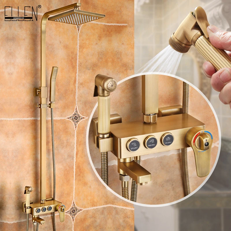 Robinet thermostatique de douche Bronze Antique avec jet Bidet ensembles de douche pour la salle de bains robinet de douche pluie EL4103.