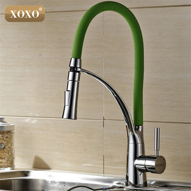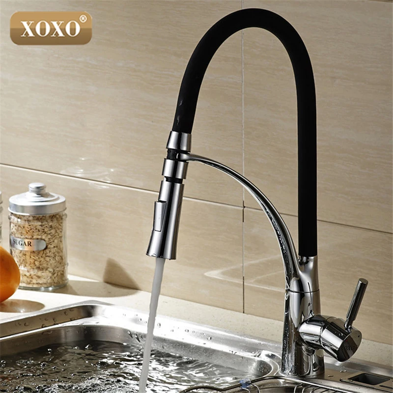 XOXO LED robinet mitigeur avec design en caoutchouc robinet mitigeur chromé pour éviers à poignée unique extractible monté sur le pont chaud et froid 83013.