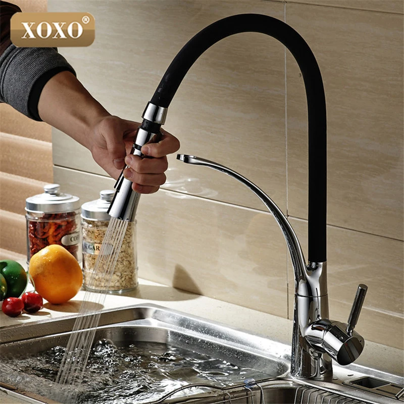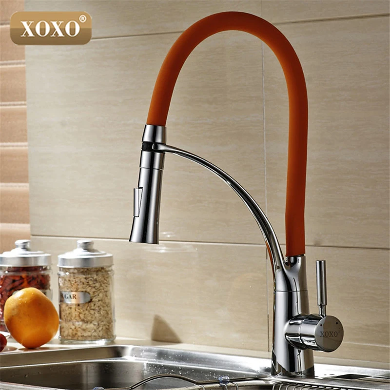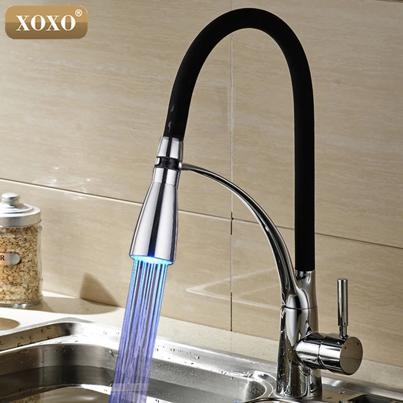 XOXO LED robinet mitigeur avec design en caoutchouc robinet mitigeur chromé pour éviers à poignée unique extractible monté sur le pont chaud et froid 83013