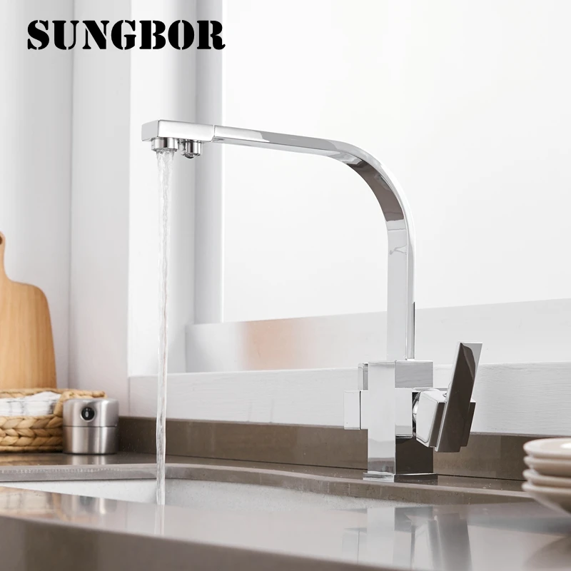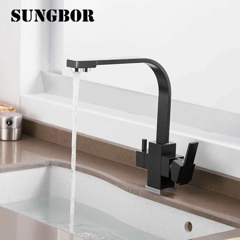 3 voies robinet d'eau potable filtre à eau purificateur cuisine robinet noir chaud froid mélangeur bassin robinet 360 pivotant cuisine robinet 0178H.