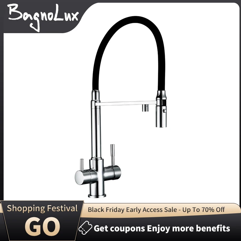 Bagnolux robinets mélangeurs de cuisine en cuivre montage sur tuyau noir pour évier de cuisine chromé buse mitigeur avec double pulvérisateur