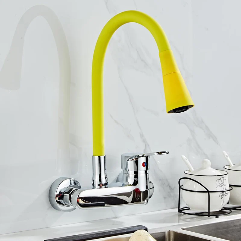 BAKALA robinet de cuisine mural de couleur rouge mélangeurs d'évier de cuisine mural tuyau pivotant à 360 degrés Double trous.