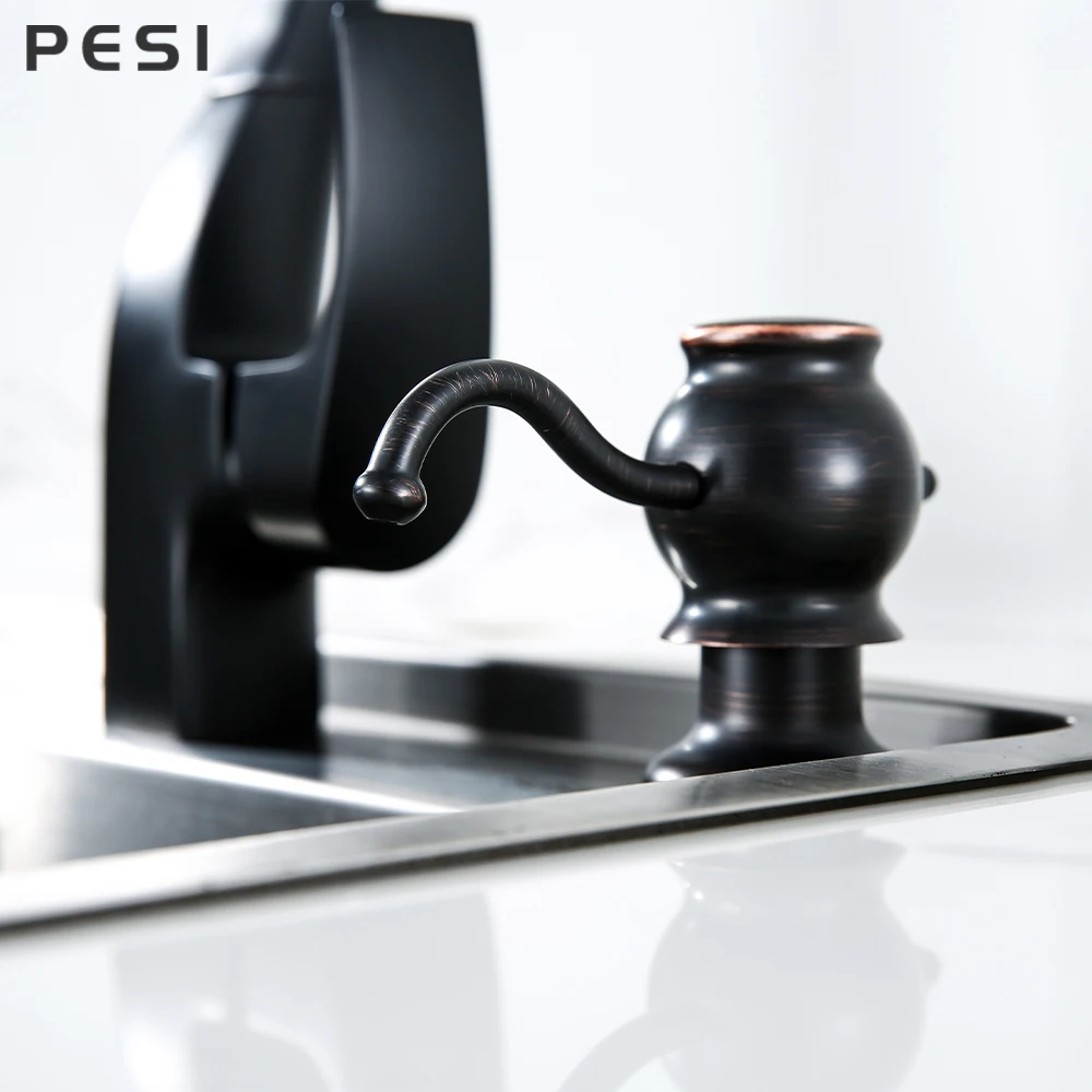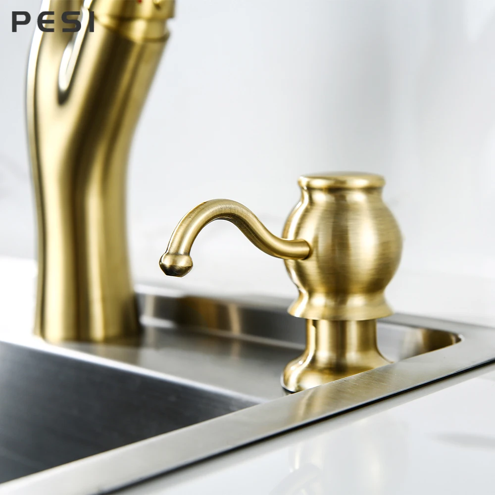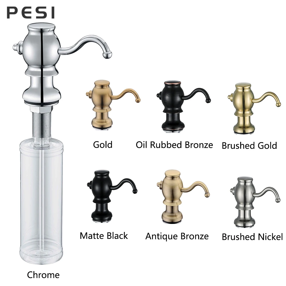 Distributeur de savon en laiton et ABS plan de travail de lavabo pour les mains pompe intégrée bouteille de 13 OZ chromé de grande capacité