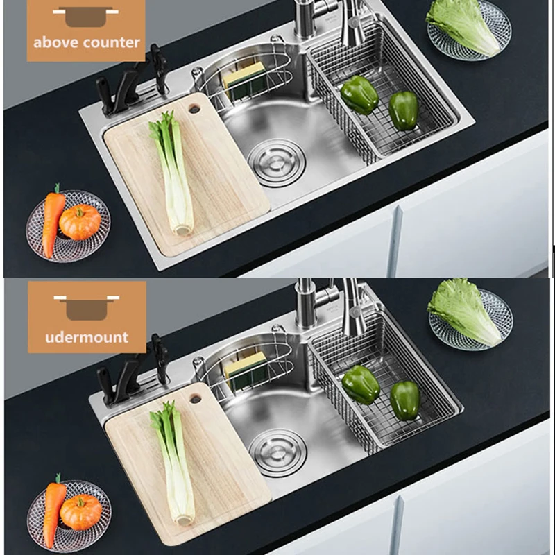 Évier de cuisine en acier inoxydable épaisseur de 1.2mm bol unique multifonctionnel sur le comptoir ou éviers udermount