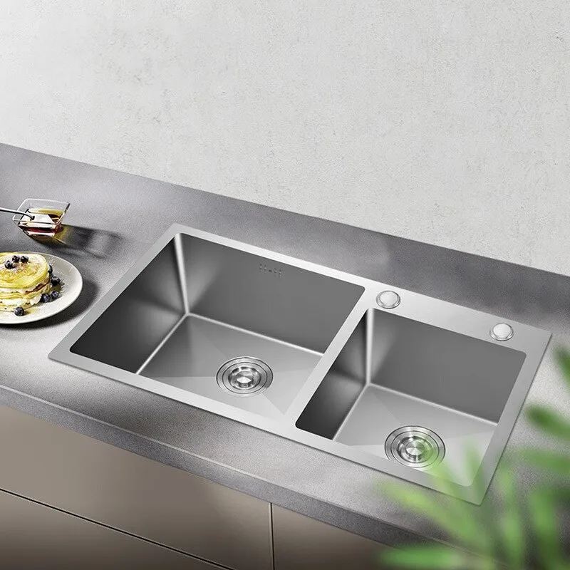 Éviers de cuisine en acier inoxydable Double bol en argent brossé au dessus du comptoir pour laver la vaisselle épaisseur de la vaisselle 3mm