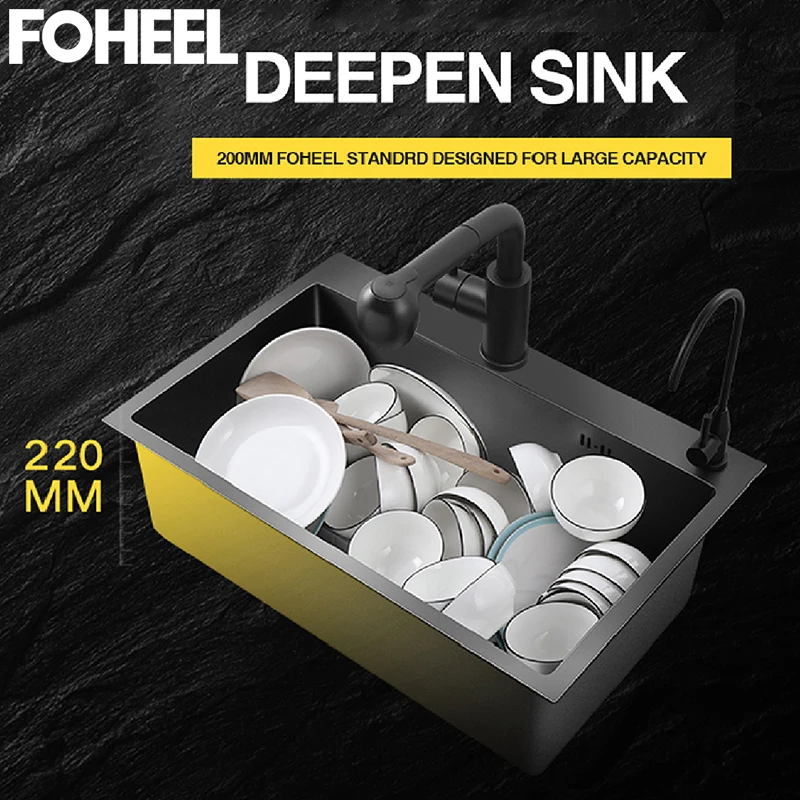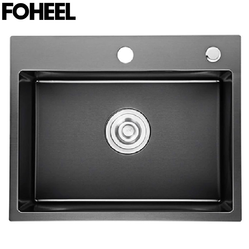 Fotalon noir cuisine evier bassin simple cuisine evier rectangulaire inox Drain panier et Drain Pip.