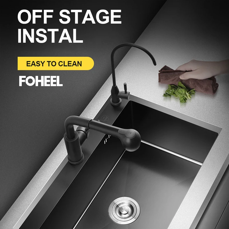 Fotalon noir cuisine evier bassin simple cuisine evier rectangulaire inox Drain panier et Drain Pip