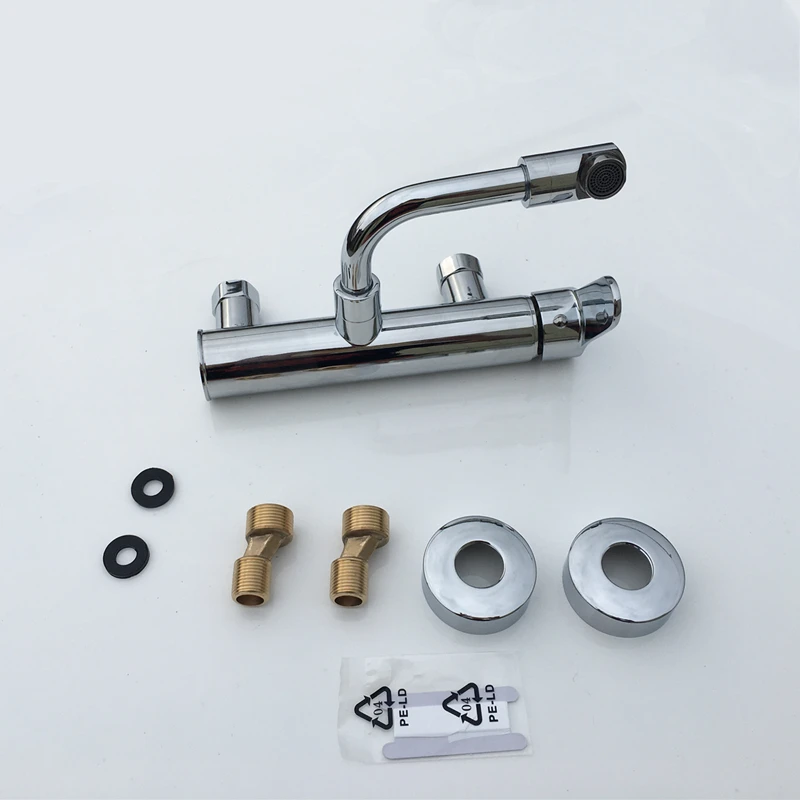 LIUYUE robinets de cuisine en laiton noir mural double trou salle de bain 360 rotation bassin robinet eau chaude froide évier grue mélangeur robinets