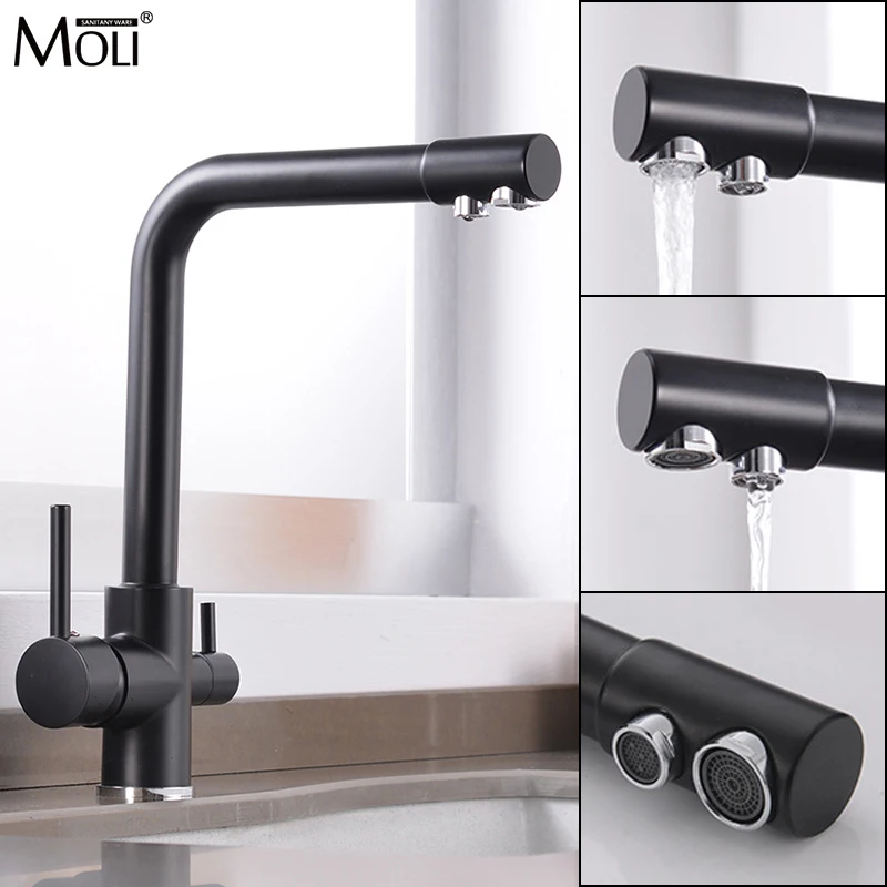 MOLI-robinet de cuisine eau filtrée Double Angle droit Rotation de 360 degrés robinet en laiton pour évier mélangeurs ML91