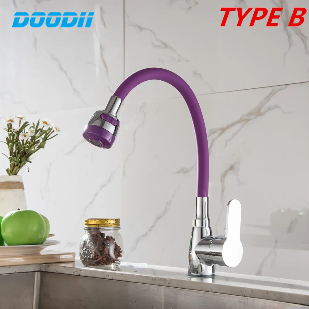Robinet de cuisine mélangeur d'eau froide et chaude à poignée unique en gel de silice noir blanc rose nez tournant dans toutes les directions