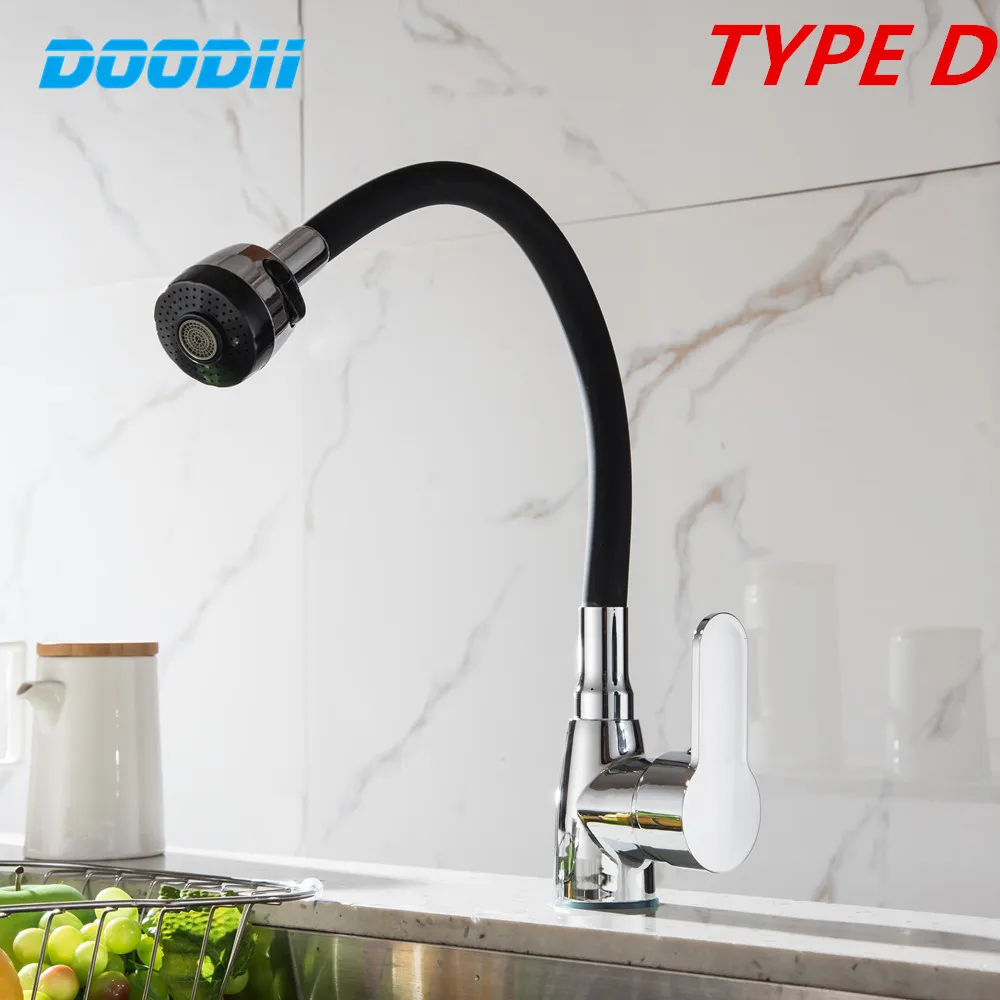 Robinet de cuisine mélangeur d'eau froide et chaude à poignée unique en gel de silice noir blanc rose nez tournant dans toutes les directions.
