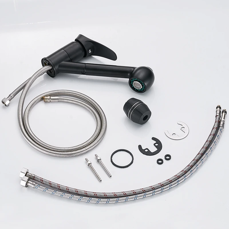 Robinet de cuisine à retrait robinets de cuisine à 360 degrés pivotant à retrait robinet d'évier à économie d'eau noir poli grue mélangeur en laiton WF-7005