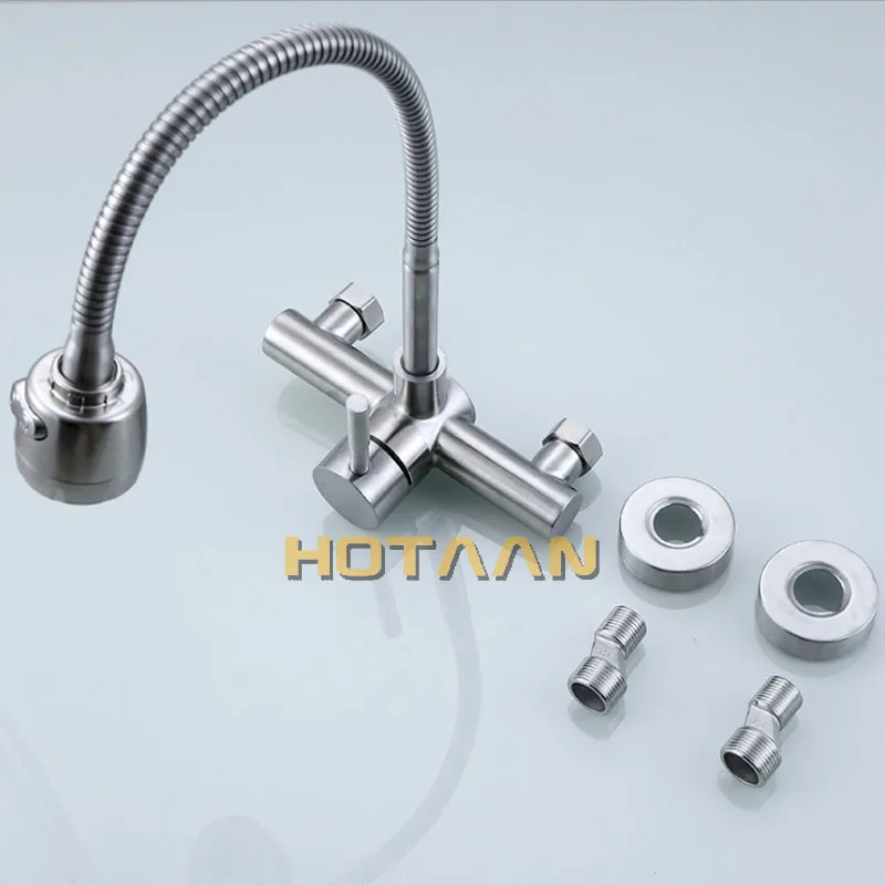Robinet mitigeur de cuisine pulvérisateur mural à poignée unique double trous SUS304 tuyau Flexible en acier inoxydable 6032.