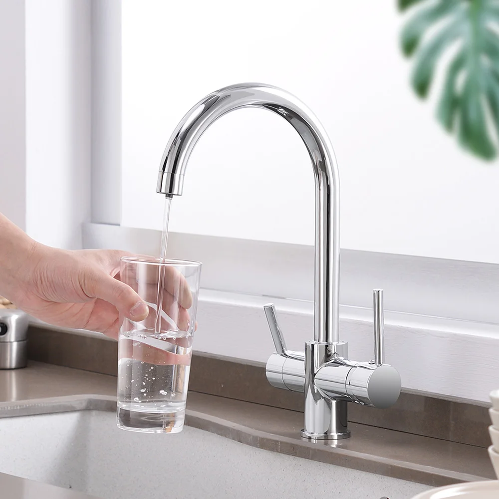 Robinets d'eau potable de cuisine Caractéristiques de Purification robinets filés d'évier à double poignée grue à Rotation de 360 degrés avec de l'eau