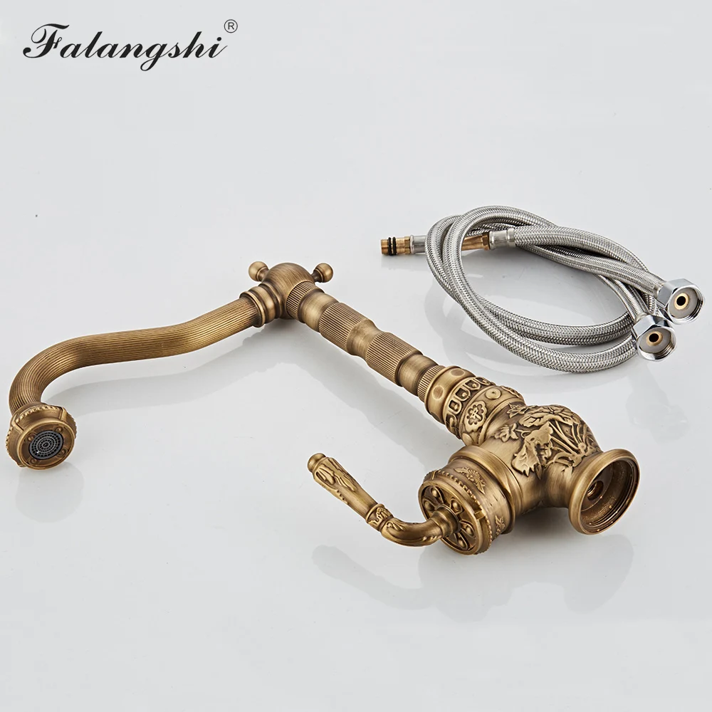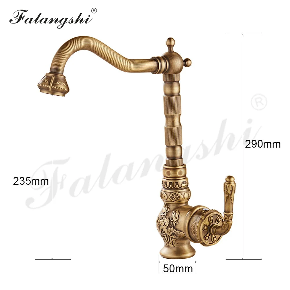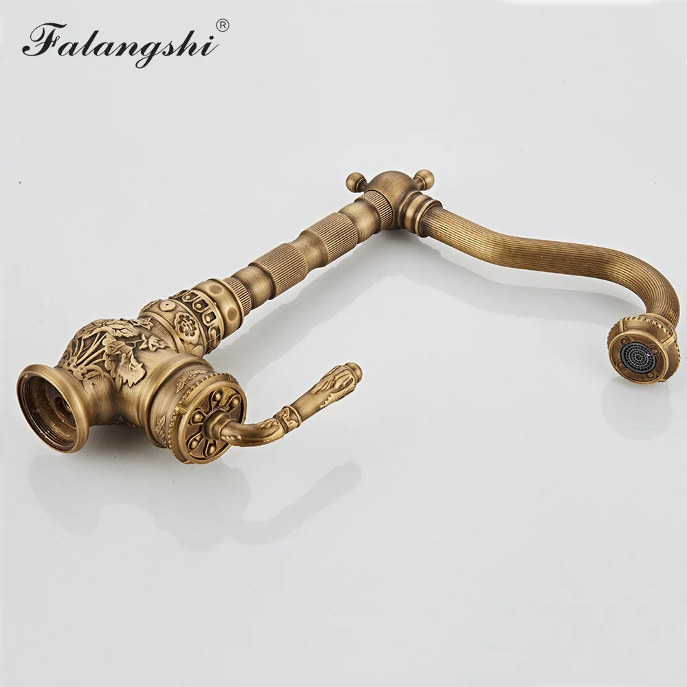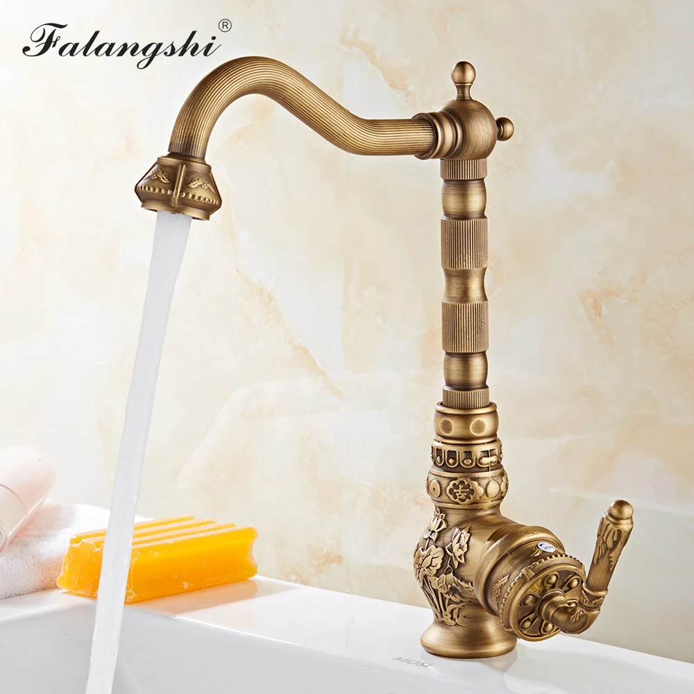Robinets de cuisine classiques mélangeur d'évier Sculpture Antique robinets d'eau froide et chaude en laiton massif mélangeur de lavabo à Rotation de 360 degrés WB1222