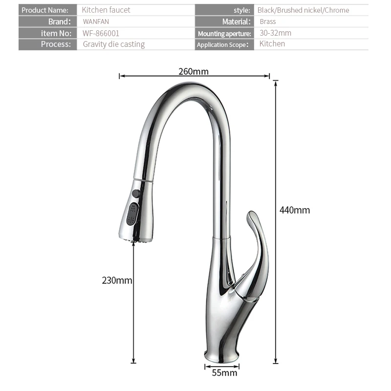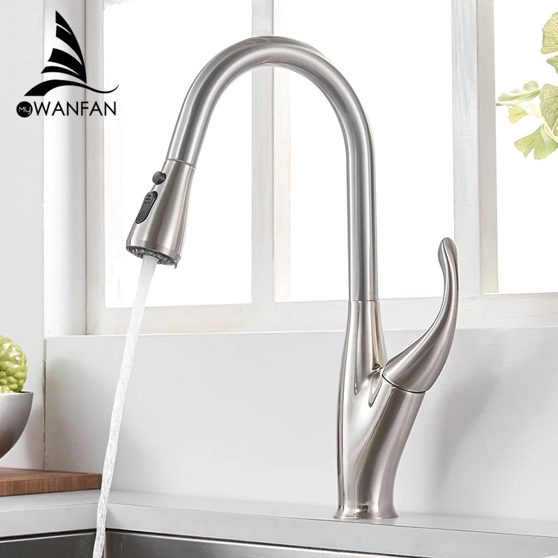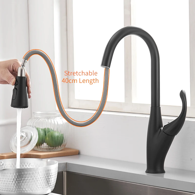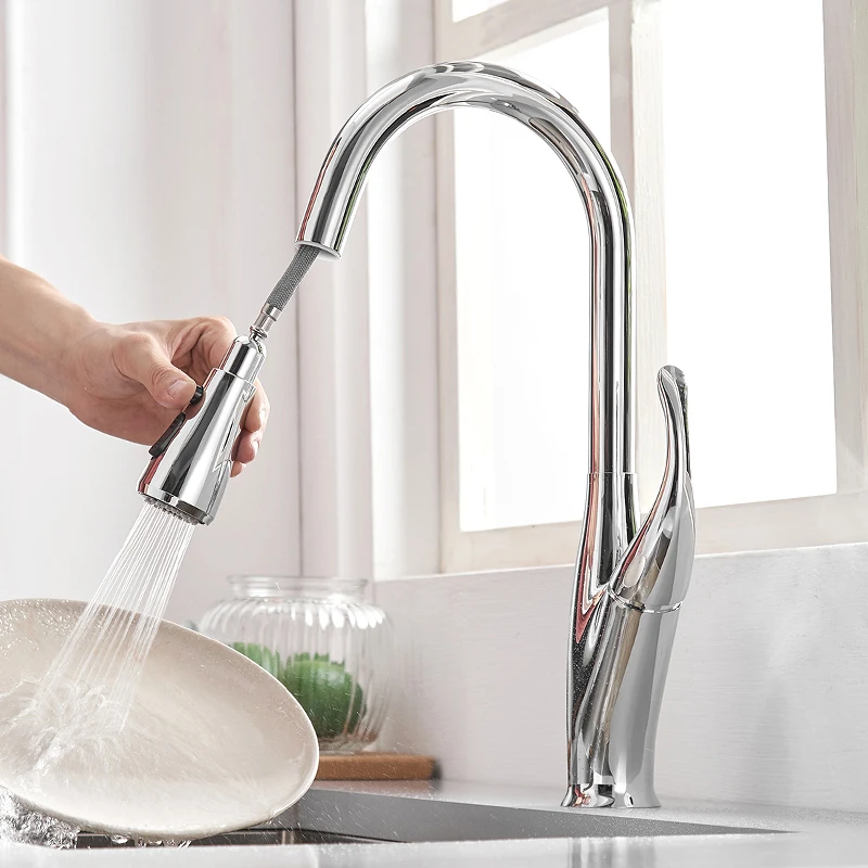 Robinets de cuisine en argent à une seule poignée Robinet de cuisine à tirette poignée à trou unique pivotant 360 degrés mitigeur d'eau robinet mitigeur 866001.